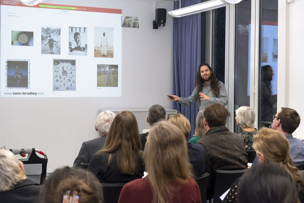 In a larger reception area about 100 people listened to talks from Diana Lockwood about how she became interested in leprosy as a teenager volunteering in a leprosy hospital in India in 1975. There are still challenges in diagnosing and treating patients and despite there being effective free antibiotics, patients and their families experience stigma. Tom talked about photographing people with leprosy and showed how the project had developed with photos and stories.